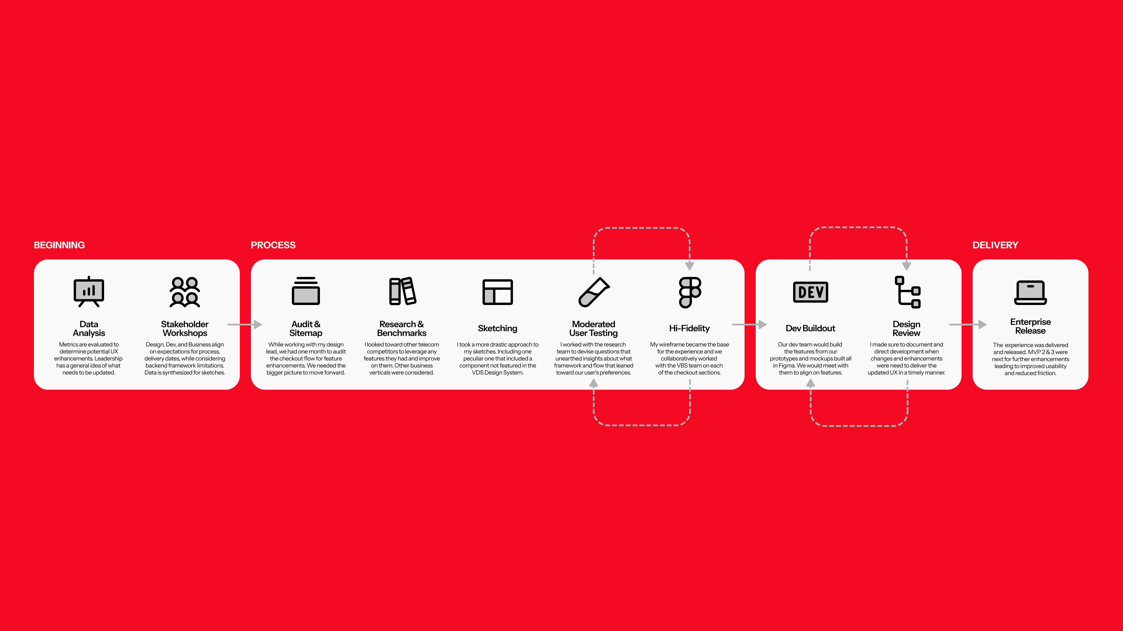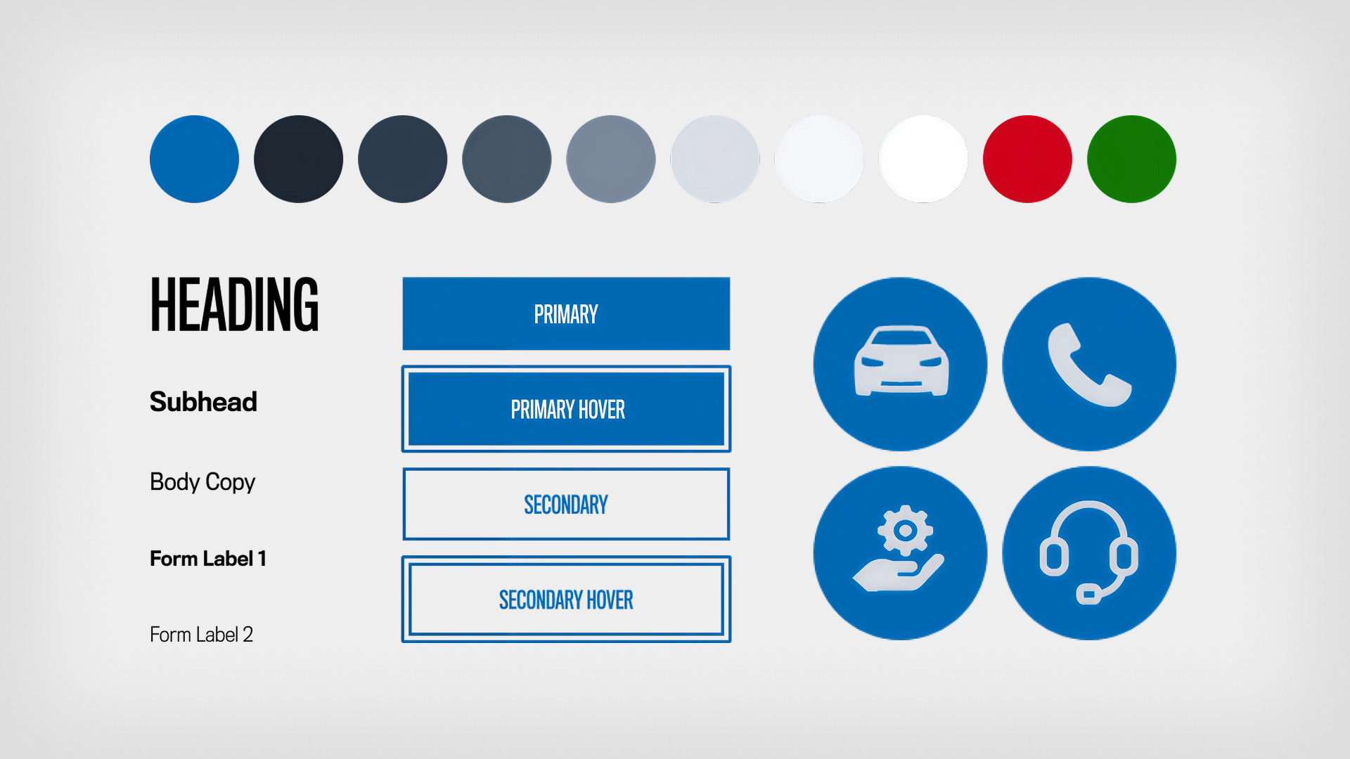 Ambiguity is always half the battle, so in those cases you find ways to improve efficiencies within your control. The big opportunity with Mopar was the design system. Although an artifact had been created by previous design partners, mockups and prototypes lacked consistency — especially at scale. Header styles didn't match their intended purpose, and components from previous features needed to be accounted for. Coupled with the company's preferred design tool, which had a convoluted cloud pushing process that caused inconsistencies and back and forth between development, design, and our Mopar stakeholders, the system needed significant attention. While working to make the design system more robust, I also had to design new pages, flows, and occasional banner images in parallel.