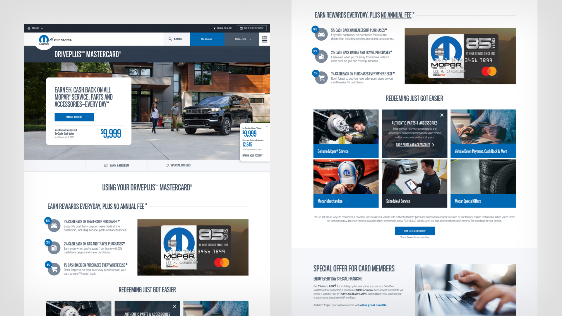 Over the course of 5 months, our efforts toward unifying the design system paid off. By retooling what already existed we streamlined our efficiency and improved output by roughly 50%. Creating sensible taxonomies led to more consistency and freed up more time to focus on complex features on the Mopar website. Those taxonomies also helped our development team when tokenizing global features across the site. One of the last projects I finished with them was a promotional credit deal page that required heavy use of legal copy. Although that sounds dubious, the important thing to note is the consistent hierarchy, better search engine tracking, and an added bonus of clear hierarchical structures for disabled users to navigate using assistive technologies.